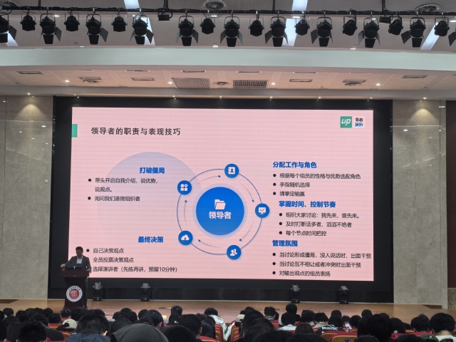 讲座伊始,龚丹巧妙运用真实群面题目,引导同学们深入理解群面中的不同角色,帮助大家直观把握面试官青睐的人才特质。龚丹老师还毫无保留地分享了群面中的有效输出技巧,为同学们提供了极具价值的实战经验。