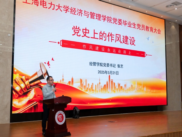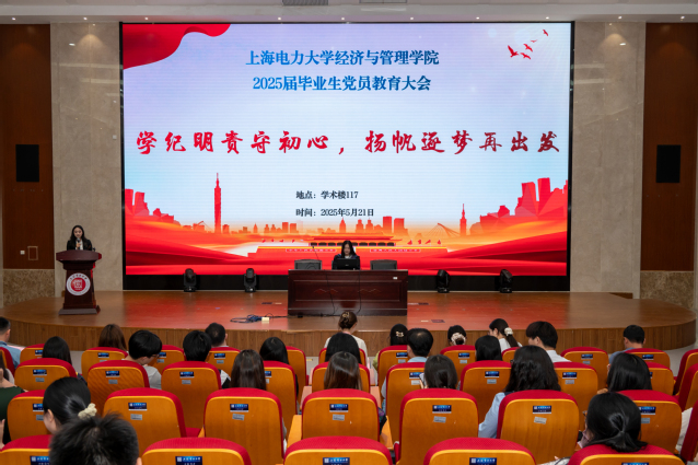 5月21日下午,经济与管理公司党委在临港校区学术楼117召开2025届毕业生党员教育大会,公司党委书记张艺、公司党委副书记孟延新、专职组织员周颖及各员工党支部书记、毕业班辅导员出席,全体毕业生党员参加。