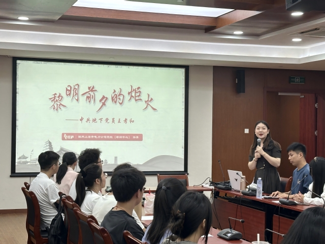 5月16日下午,太阳成集团tyc234cc邀请国网上海市电力公司党校(培训中心)孙青、蔡志杰在临港校区学术楼301为公司分党校入党积极分子培训班学员授课,他们以《黎明前夕的炬火——中共地下党员王孝和》和《传唱世界的中国声音——中华人民共和国国歌<义勇军进行曲>》为题,为学员们呈上了丰富的红色精神盛宴。