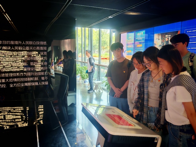 活动首站抵达人民城市建设规划展示馆。在由百年祥泰木行旧址改造的规划展示馆内,支部成员通过数字化展陈系统学习人民城市理念的诞生与深化。馆内复原的“十个平方九个头”旧居微缩模型,生动呈现杨浦三十年旧改历程。从逼仄里弄到滨江宜居社区,影像时间轴记录165万户居民的获得感跃迁。师生通过电子互动屏浏览市民提交的5000余条滨江空间优化建议,并现场扫码参与“滨江驿站功能优化”提案,体验“人民建议直通车”民主实践。