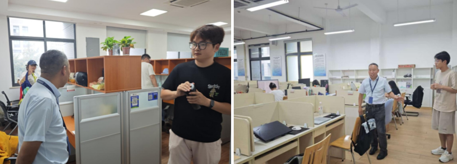在教师办公室与研究生工作室,对办公区域的用电安全、消防安全及环境卫生进行检查。重点查看了办公室内电脑、打印机等电器设备的使用与断电情况。要求教师与研究生在假期离校前要做好办公区域的安全收尾工作,关闭所有电源开关,清理易燃杂物,避免因疏忽引发安全事故。同时,要求各系部、研究团队加强假期安全管理,确保办公与科研环境安全有序。