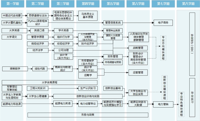 专业培养目标:本专业结合公司工科背景,培养适应国家经济建设与能源战略发展需要,德智体美劳全面发展,具备人文精神、科学素养、诚信品质、创新意识、团队精神,以及良好的公共意识与国际视野;掌握现代经济管理理论及管理方法,具备较强的企业经营管理实践能力,能够胜任电力企业等企事业单位、各级政府部门管理岗位工作的应用型、复合型管理人才。