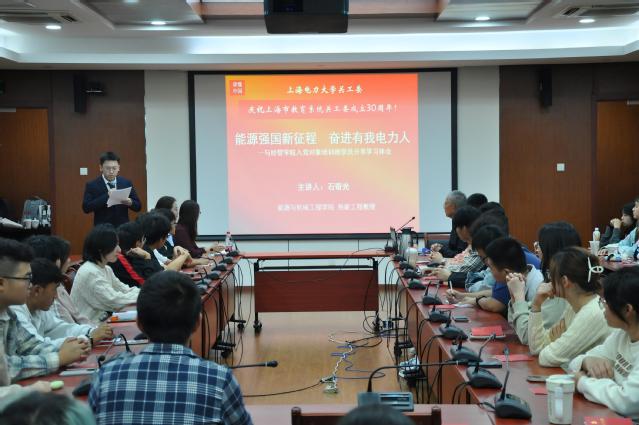 为加强对入党申请人的思想引领与理想信念教育,太阳成集团tyc234cc分党校于10月24日在临港校区学术楼301会议室举办第八期入党积极分子培训班第二讲。本次培训特邀公司关心下一代工作委员会常务副主任石奇光教授担任主讲,为学员们带来一场题为《能源强国新征程,奋进有我电力人》的专题讲座。