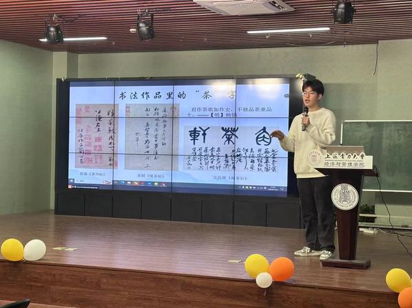 一杯“中国茶”,是传承、弘扬中华文化的重要载体。在“茶香古韵”活动中,由参与活动的老师、同学共同讲述学习茶的由来、“茶”字的演变、茶的功效、茶的分类等,以茶叙事,以茶述理,了解传统茶文化的内涵与韵味。