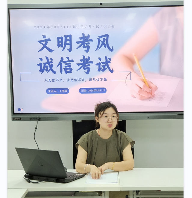 各年级辅导员在召开诚信考试主题班会中对班级同学强调:应端正考风、严肃考纪、文明答题、诚信应考,在公平、公正、公开的竞争平台中自我检验,以诚信的行为铸就诚信的人格。