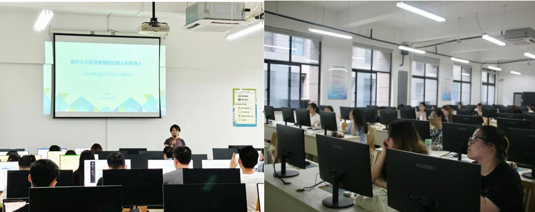 6月28日,中国船舶集团旗下上海外高桥造船海洋工程有限公司人事张也受邀为公司工商管理专业员工开展专家讲座。讲座以“做好人力资源管理的出卷人和答卷人”为主题。张老师凭借在大型国有企业从事人力资源管理工作的实践经验,从招聘面试官和求职者两个角度,讲述人员招聘技能和毕业生应聘技巧,并分享了大量招聘与求职典型案例。在交流答疑环节,同学们积极提问,针对面试中的各种问题进行咨询,张老师逐一耐心解答,并对同学们的简历和自我介绍进行详细指导。