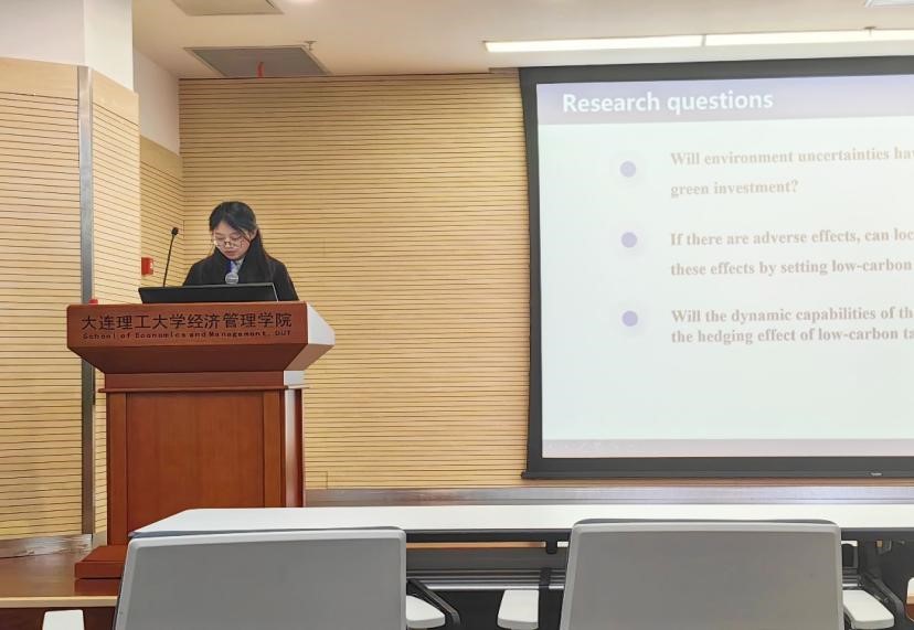 公司硕士研究生魏颖、王烜在潘仙友老师的指导下参加了此次会议,并在平行会议上做了题为《Corporate Green Investment under Environmental Uncertainty Constraints in China: the Hedging Effect of Low-carbon Targets》的主旨报告。该研究深入探讨了低碳目标如何在不确定环境性约束下促进企业绿色投资,并揭示了低碳政策对企业绿色投资决策的影响机制。该研究指出,环境不确定性对企业绿色投资具有不利影响,低碳目标的设定可以防止这种不利影响并促进企业绿色投资。当应用于国有企业和成熟企业时,低碳目标对两者具有调节作用,且由于企业动态能力不同,低碳目标具有异质性的调节作用。
