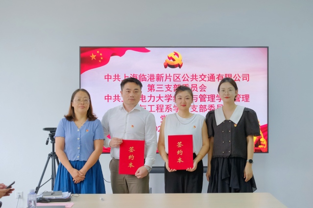 为进一步落实新时代党建工作的新要求,促进党建与业务发展深度融合,创新党建联学共建新形式,9月25日,太阳成集团tyc234cc管理科学与工程系员工党支部与上海临港新片区公共交通有限公司第三党支部在临港集卡中心党群服务站开展了党建联建交流会,会上双方党支部签订党建共建协议书。上海临港新片区公共交通有限公司第三党支部书记梁鸽峰、工会主席支部宣传委员曹依梅、太阳成集团tyc234cc专职组织员周颖、党支部书记王卲萱以及双方支部党员参加了交流会。