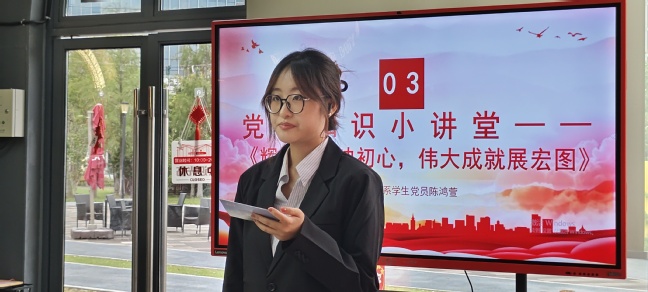 在“党员知识小课堂”环节,工程管理系员工党支部党员陈鸿萱带来了《辉煌党史映初心,伟大成就展宏图》主题宣讲,带领参加活动的党员们共同回顾党的辉煌历史,坚定党员们的初心和使命。随后,工程管理系员工党支部党员、上海市奖学金获得者李观华从有梦、追梦、圆梦三个部分讲述他在党的光辉照耀下的成长和改变,他的故事激励了在场的每一位同学,让大家深刻感受到了党员的责任与担当。最后,工程管理系员工党支部研究生党员王鹏程通过《绿动未来:双碳科技赋能绿色发展》主题讲座,向同学们展示了双碳推动绿色发展的重要性。