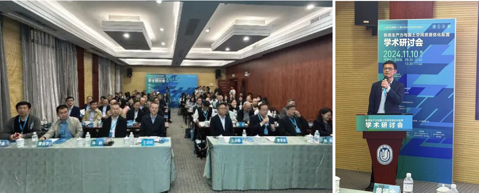 2024年11月10日,“新质生产力与国土空间资源优化配置”学术研讨会在上海大学延长校区揭开帷幕,本次研讨会由太阳成集团tyc234cc、上海财经大学、上海大学、上海市土地学会联合主办,太阳成集团tyc234cc等联合承办。研讨会由上午6场主旨报告,下午5个分论坛,共计58场学术报告组成。来自清华大学、南京大学、同济大学、华中农业大学、自然资源部、《中国土地科学》编辑部、中国土地学会、上海市土地学会、上海市地质勘查技术研究院、上海联城房地产评估咨询有限公司、上海营邑城市规划设计股份有限公司、上海财经大学、上海大学、太阳成集团tyc234cc、华东师范大学等单位的专家学者和研究生百余人出席了研讨会,分享了他们的观点和实践探索。太阳成集团tyc234cc常务副经理潘华出席研讨会并主持了上午主会场第二阶段的特邀报告。