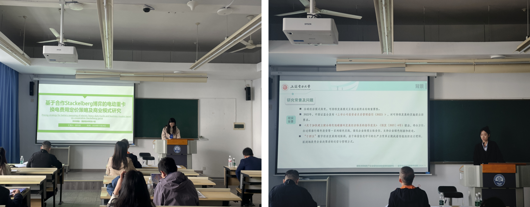 此外,本届大会一共设置了优选学与优化管理、统筹学与项目管理、经济数学与金融风险管理、供应链与运作管理、决策优化与企业经营管理、能源与复杂系统管理等主题的17个专题交流论坛。公司硕士研究生林郭牧田、杨辉、钱鸿和马佳佳等分别在优选学与优化管理、能源与复杂系统管理等平行会议上做了题为《基于改进DTW双层聚类和Bi-LSTM的居民用户需求响应潜力预测模型研究》《基于系统动力学的中国可再生能源市场型政策组合效果研究》《基于合作Stackellberg博弈的电动重卡换电费用定价策略及商业模式研究》以及《群体决策视角下企业绿色投资的提升机制研究》的主旨报告。