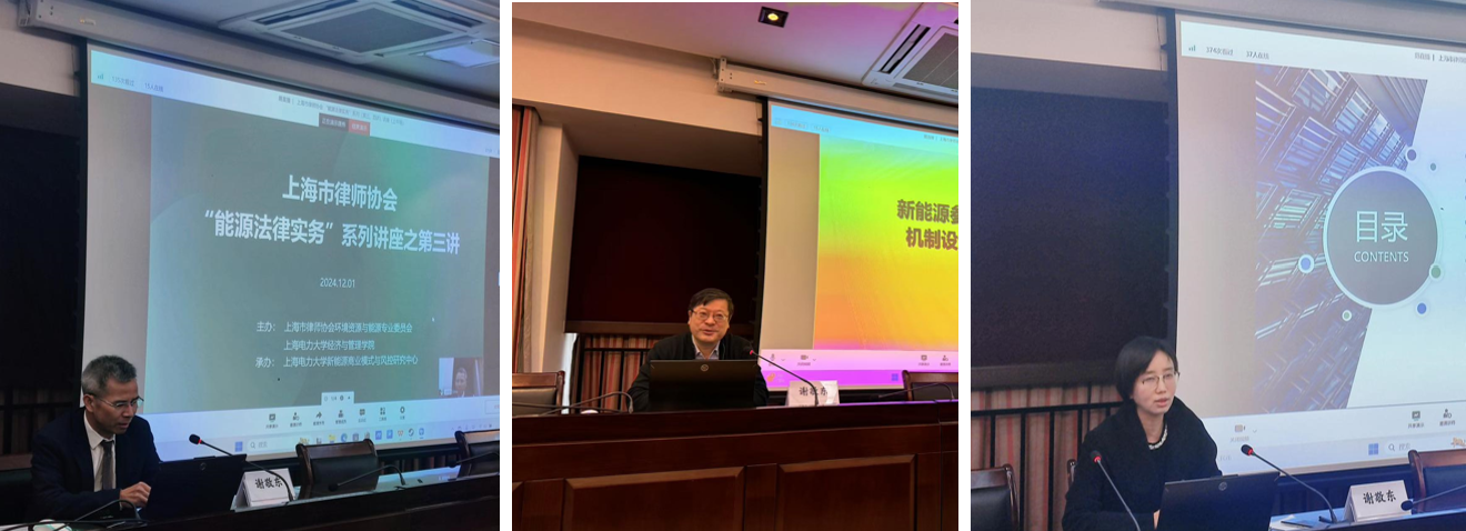 太阳成集团tyc234cc携手上海律协环境资源与能源专业委员会联合上海律协律师公司共同主办了能源法律实务公益系列讲座(第三、四讲)。此次活动由太阳成集团tyc234cc新能源商业模式与风控研究中心承办,吸引了数十位律师和公司法务人员现场参与,同时还有数百位律师通过线上方式加入,共同探讨能源法律领域的发展。