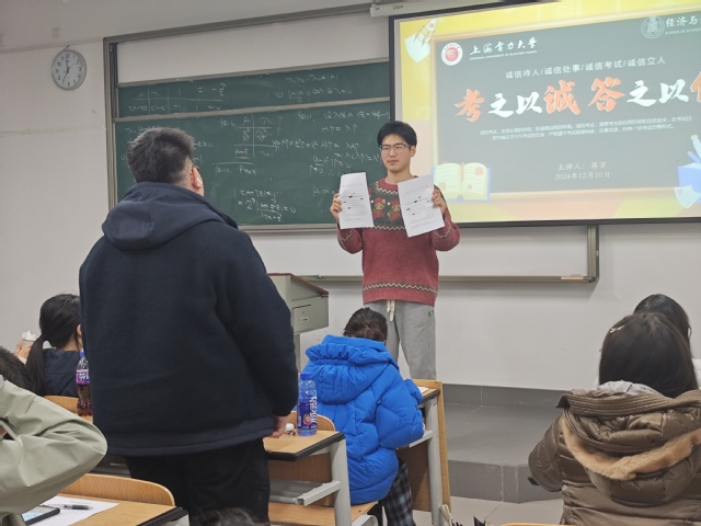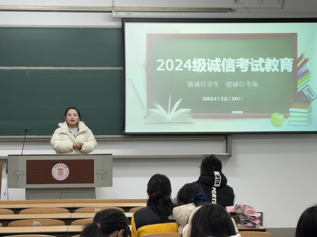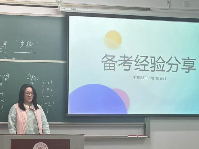 展晴晴在诚信班会中还特别邀请了专业成绩优异的同学来分享复习备考经验。郑涵月同学从制定合理学习计划、梳理知识点的技巧等多个方面娓娓道来,为其他同学提供了实用且有效的备考思路。通过学霸分享,不仅强化了员工们诚信考试的观念,也助力他们更科学地准备即将到来的考试。