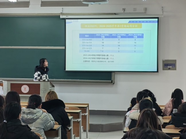 2024级新生的主题班会中,辅导员重点对学业成绩分析和学业指导,以专业为单位解读了所带专业上学期的平均绩点、挂科情况,并根据挂科情况以及宿舍分布、挂科名录等分析了学业上所存在的问题。指出除了学业基础问题,其次是学业态度问题,从成绩分析出发与员工制定了大一下学期计划,如班级内部建立帮扶小组等。